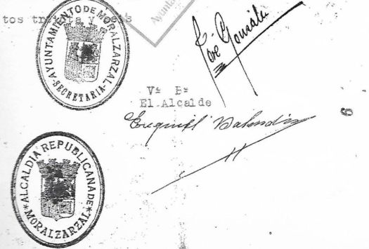 acepción que dice que alcalde es "juez ordinario que administraba justicia en un pueblo y presidía al mismo tiempo el Concejo". En los pueblos de nuestro entorno ha habido alcaldes ordinarios, o sea, vecinos de un pueblo que ejercían en él jurisdicción ordinaria, es decir, que tenían poder o autoridad para gobernar en un pueblo. A los alcaldes ordinarios, antiguamente se los denominaba justicias y tenían entre sus funciones el mantenimiento del orden y la seguridad pública además de la administración de justicia lo mismo en las causas civiles como criminales y se trataba de una administración de justicia de primera instancia, pero veamos parte de nuestra historia "cebollera" en la que hubo una actividad inusual de variaciones en la Alcaldía. Hubo una época en nuestro pueblo en la que se realizaron muchos movimientos, por distintas razones, en los puestos ocupados en la Corporación municipal y esa época fue durante la Guerra Civil de 1936, pero antes de tocar este tema, veamos qué personas constituían el Ayuntamiento en los años anteriores al 36, años en los que también hubo bastante movimiento en los sillones del Consistorio. Empezando por 1923, cuando el general D. Miguel Primo de Rivera encabezó el 13 de septiembre de 1923 un golpe de Estado que instauró una dictadura que duró de 1923 a 1925 y que consistió en un directorio militar para continuar con el subsiguiente directorio civil desde 1925 hasta 1930, que fue presidido también por él, en nuestro pueblo hubo repercusiones por el hecho de que fue disuelto el Ayuntamiento con fecha cinco de octubre de 1923 ya que se ordenó el cese de todos los cargos municipales, para ser sustituidos por los vocales y se nombró uno nuevo por la Junta de Asociados. La Junta de Asociados que era una Comisión que tenía como cometido la aprobación de los presupuestos, el control de las cuentas municipales y la creación de arbitrios, y estaba compuesta por todos los concejales del Ayuntamiento y una asamblea de vocales asociados para desempeñar las funciones propias del Ayuntamiento, y que producían los mismos efectos legales que las sesiones del Ayuntamiento, con reuniones que eran públicas y se levantaban actas que realizaba el Secretario del Ayuntamiento, estando basadas en la Ley de Organización y Administración municipal del 5 de julio de 1856. Retomando el nombramiento de la nueva Junta de Asociados celebrada ese día cinco de octubre, el acto estuvo presidido por el cabo comandante del Cuartel de la Guardia Civil de Cerceda y el resultado fue el siguiente : nuevo alcalde Juan Martín Lázaro que obtuvo mayoría absoluta, Mariano González González como teniente de alcalde; fue elegido Regidor Interventor Primitivo Balandín López y de Regidor Síndico Nicolás Gómez López. Además salieron elegidos como concejales Luis Hernando González, Pedro González de la Rubia, Fermín Segovia Balandín y Maximino Balandín López, siendo todos ellos vocales asociados la la Junta Municipal. En la foto siguiente se muestra al que fue elegido como Regidor Interventor, que tenía el oficio de zapatero, Primitivo Balandín López. ![]() Dejaron el cargo en el Ayuntamiento los vocales de la Junta Municipal salientes Toribio Pascual Pérez, Luciano Balandín González, Tomás González Morato, Martín González Sepúlveda, Ramón Sanz González, Melchor Antuñano Martínez, Eleuterio Martín Benito y Teodoro Morales López. Cuando se proclamó la segunda República el día 14 de abril de 1931, el alcalde era Basilio Sanz González, que lo fue hasta el mes de junio de ese mismo año, y después, en ese mismo mes de 1931 el Ayuntamiento estaba constituido por Antonio Morales López como alcalde, Manuel López Sastre como teniente de alcalde, y los concejales eran Raimundo González Bermejo, Marceliano Moral Arranz, Emilio Segovia González, Juan Martín Lázaro, Esteban González Morato y Teodoro Balandín Madrid. En las fotos que siguen se ve a Basilio Sanz González en pose ante la cámara para una foto de salón y en la foto de la derecha se le ve bailando con su esposa Alejandra Martínez Martín, unos años más tarde. ![]() En sesión ordinaria del día 28 de mayo de 1932, presenta su renuncia el alcalde Antonio Morales y se acepta por las razones expuestas por el dimisionario, pero debe seguir como concejal, pasando a ser alcalde Manuel López Sastre, que entonces era el Teniente de Alcalde, pero con el carácter de interino. A principios del mes de junio de 1932, la Alcaldía estaba constituida por el alcalde antedicho y como concejales estaban los mencionados con anterioridad, salvo el que es nuevo alcalde, y Antonio Morales López como concejal. De la sesión extraordinaria celebrada el día 8 de julio de 1932 se celebró votación para elección de alcalde, resultando elegido por mayoría absoluta del número legal de la Corporación D. Raimundo González Bermejo que obtuvo cinco votos de los ocho que tenían derecho a voto y quedó proclamado Alcalde Presidente de este Ayuntamiento de Moralzaral, pasando seguidamente a ocupar la Presidencia y haciéndose cargo de las insignias de la Alcaldía. De esa sesión se levantó acta y seguidamente se muestran las firmas que constan en ella, la del alcalde, concejales y el secretario. El día 16 de julio de 1932 se celebra sesión ordinaria en el Ayuntamiento y es elegido por mayoría como Regidor Síndico el concejal D. Emilio Segovia González, y llegando el año 1934, en sesión extraordinaria celebrada el día tres de octubre de ese año, Raimundo González Bermejo, que era el Alcalde, presenta su dimisión y por las razones expuestas y la votación subsiguiente, es admitida, aunque continuó como concejal, de modo que Raimundo González estuvo de alcalde dos años, dos meses y siete días. Seguidamente se muestra la parte final del acta de la sesión celebrada el día 8 de julio de 1932 en la que fue elegido Raimundo González Presidente de la Alcaldía, y en ella se ve