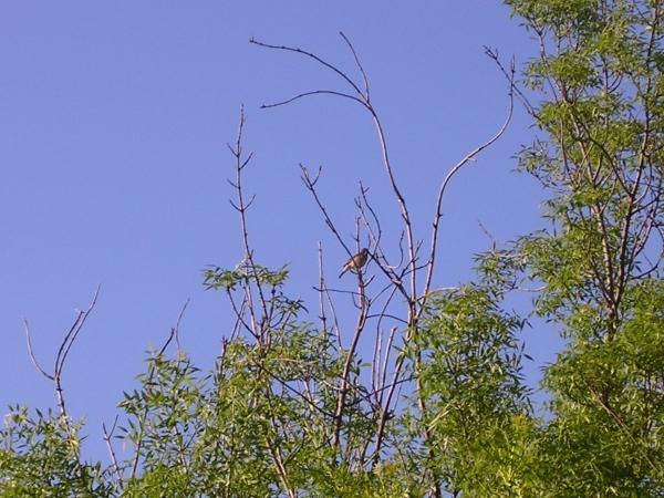 oropéndola hembra posada en un fresno en la dehesa de abajo