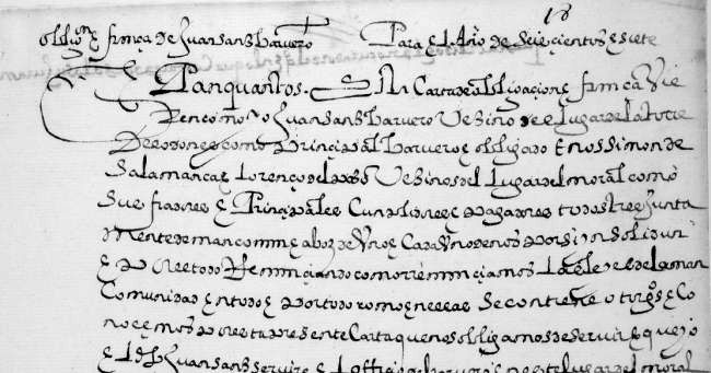 dientes. En la época que siguió a la Edad Media, es decir, el Renacimiento, en nuestro pueblo hubo un oficio que desempeñaron gentes que habitaban en nuestra villa, el llamado oficio de barbero y hay noticias sobre esa profesión en documentos del Archivo municipal correspondientes a actas de reuniones del Consistorio, a través de los cuales hemos podido sacar información relativa a ese oficio y las personas que se dedicaron a ello. En aquellos tiempos, los barberos no solamente se circunscribían al tratamiento de las cabellos de los clientes o al arreglo de la barba, sino que se atrevían a desempeñar cometidos que eran propios de dentistas e incluso de médicos, por lo que aquellos que iban a una barbería lo hacían además de ir a que les cortasen el pelo o la barba, también lo hacían para que les efectuaran alguna sencilla operación, como realizar una sangría, sajar un forúnculo o divieso, vendar alguna herida o a que les sacaran una muela o un diente, siendo la sangría, según el diccionario de la Real Academia, el abrir o punzar una vena a alguien y dejar salir determinada cantidad de sangre, y el sajar es hacer un corte sobre un grano o un tumor para extraerle las impurezas. En esa época, eliminar sangre del cuerpo era considerado como un remedio para devolver la salud al paciente, lo que era una sangría, de manera que el "enfermo" volvía a su estado normal. Para hablar de ese oficio de barbero en nuestro pueblo, se sabe por documentos del Archivo Municipal que desde el 22 de febrero de 1607 ya fue barbero Juan Sanz, vecino de Torre de Lodones, pero veamos concretamente otro documento de dicho Archivo que trata del acta de la sesión que se celebró por el Ayuntamiento en el mes de junio de 1607, y en ella se hace constar el tema relativo a ese oficio, mostrándose a continuación parte de ese acta. ![]() en la que se puede leer como cabecera : Obligon ε fiança de Juan Sanz, baruero Para ξl Año de seiscientos ε siete que dice lo siguiente, expresado en términos parecidos lo más fielmente posible a lo que está escrito : Por quantos esta Carta de obligacion ε fiança vieren como yo Juan Sanz baruero Vezino del lugar de la torre Delodones como principal baruero ε obligado ε nos Simon de Salamanca ε Lorenzo del Pozo vecinos del lugar del Moral como sus fiadores ε principales cumplidores ε pagadores todos tres juntamente de mancomun ε a los de uno ε cada uno de nos por si consolidan ε sobretodo renunciando como renunciamos la de ser de la mancomunidad en todo ε por todo como en ella se contiene otorgamos ε conocemos por esta presente carta que nos obligamos de servir ε que yo el dicho Juan Sanz servire el oficio de baruero en este lugar del moral este presente año de mill seiscientos ε siete desdel veinte ε dos de febrero del dho año hasta fin del que remato ε firme el dho Juan Sanz asistiendo ε Residiendo en este dicho lugar del Moral todo el obligado sin azer falta ni ausencia del Sirviendo a todos los Vzos de este dho lugar ε a sus hijos ε criados ε haziendo sangrias pegando bentossas ε afeitando ε sacar muelas ε dientes ε haziendo todas las demas cosas tocantes ε pertenecientes al dho oficio pegando ventosas sin azer falta ni ausencia del dho servicio so pena que a nuestra costa se pueda buscar otro oficial. Se sirba por mi el dho Juan Sanz ε por lo que costareme puedan executar a mi ε a los dhos mis fiadores ε con personas por todo rrigor de po y prision ε esto por Razon que por el dho servicio me ha de dar ε pagar el qo ε vecinos deste dho lugar quarenta Ducados pagados por sus tercios del año De quatro en quatro meses Cada tercio lo que montare el qual salario me han de dar rrepartido y coxido por los alguaziles del qo de este dho lugar ε el primer tercio se entiende que se me Uvo de pagar luego ε el segundo en todo el mes de mayo ε el tercero en todo el mes de Setibe deste dho año porque de esta manera fue el concierto ε desta manera nos obligamos de servir ε que serbiremos el dho oficio De baruero en este dho lugar todo el dho tienpo ε que si se truxere oficial. Que sea creido el procurador del qo en lo que Costare por solo su juramento. Fue ffac otorgada en el lugar del moral a beinte ε siete dias del mes de junio de mill seiscientos ε siete años siendo tos alo de rrobledo alonso millan ε andres de Cordoua Vecinos Del dho lugar ε los otorgantes que sabian firmar lo firmaron De Sus nombres ε por los demas que no sauian a su rruego lo firmo Un to yo el Scriuano que soi supcripto doy fe que conozco a los dhos otorgantes. Y siguen las firmas de Lorenzo del Pozo, Juan Sanz, Alonso Millán y del escribano Sebastián Martínez. Por lo que vemos, hubo un barbero sacamuelas, como se decía hace unos años, llamado Juan Sanz, vecino de Torrelodones que se comprometió a trabajar el oficio en nuestro pueblo y fijar la residencia aquí. Recibía 40 ducados al año, de manera que los cobraba en tres plazos por cuatrimestres, según el acuerdo que se firmó el día 27 de junio de 1607. Sus fiadores fueron Simón de Salamanca y Lorenzo del Pozo, vecinos del Moral, y actuaron de testigos Alfonso Robledo, Alonso Millán y Andrés de Córdoba, también vecinos de nuestro pueblo. Los alcaldes en ese tiempo eran Francisco Herranz y Juan de Alonso Rubio, siendo Juan González el procurador general del Concejo . Otro año del que se tiene constancia de la subasta del oficio de barbero en nuestro pueblo es en 1609, y se ve el encabezamiento de los escrito en el acta correspondiente que pone Obligon del baruero Para el Año de seiscios ε nuebe. Y el acta correspondiente a la postura de la subasta para el oficio de barbero, está expresada en términos muy parecidos a los del acta dicha anteriormente correspondiente al año 1607. Están presentes Juan Sanz, como candidato a desempeñar el oficio de la barbería, y los vecinos del Moral, Juan del Álamo el mozo y Simón de Salamanca, como sus fiadores y pagadores conjuntamente los