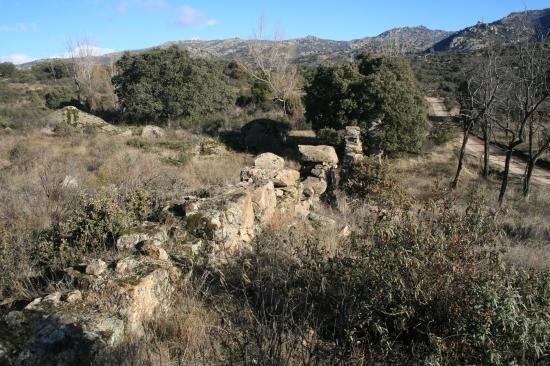 Cuchillar. Seguí bajando siguiendo la tubería, hasta llegar al arroyo de Peregrinos, y tras caminar un poco más hacia la izquierda, aguas arriba del arroyo, pude contemplar el estado en que se dejó la presa que hace ya muchos años se inacabó. La zona es conocida con el toponímico de "Las Bolivas", aunque en otros planos pone "Bóbilas", de ahí el nombre que he dado a la inacabada construcción, presa de las Bolivas, y ese toponímico se ve en algunos mapas, como el Topográfico Nacional, y en la aplicación titulada "Sistema de Información Territorial del Instituto de Estadística de la Comunidad de Madrid". En la Revista de Obras Públicas de noviembre de 1947, hay noticias de dicha presa, en el trabajo del ingeniero de caminos D. José Paz Maroto, que versa sobre Urbanización y Abastecimiento de la Sierra Madrileña del Guadarrama, en el que se puede leer lo que manifiesta : «expone el autor su proyecto de abastecimiento de agua a toda la zona de la Sierra comprendida entre Aravaca y Cercedilla, dando cuenta de las dificultades que se presentan para acometer la empresa de un modo general, lo que no ha impedido que estén ya en marcha ciertas partes del plan de conjunto, que considera el autor, de gran porvenir.» Aunque el proyecto es de 1944, ya se hizo un tanteo de la posibilidad de ese abastecimiento en el año de 1933, y no se sabe porqué la presa que se iba a construir en ese terreno de Moralzarzal, por donde discurre el arroyo de Peregrinos, se quedó en una fase primaria de construcción, pero ese es un tema a tratar en otra página de este sitio web. Una vez en la zona donde se encuentra dicha presa, pude ver la excavación hecha en el margen derecho del arroyo, con montones de piedras esparcidas por el lugar, un dique para poder cargar y descargar materiales, la zona del margen izquierdo del arroyo, ya hormigonada, formando escalones y con piedras cuya finalidad sería el impedir el deslizamiento del dique, y un muro que parece ser el que sirviera de dique para encauzar el agua sobrante por un canal de salida. En el margen izquierdo del arroyo, y cerca de donde se encuentra la tubería, se halla una caseta, al parecer usada por los operarios de dicha obra, en la que guardaban las herramientas y les servía de vestuario para cambiarse de ropa y guardar la misma, caseta que se distingue en la foto de la derecha. Fue en el año 1947 en que salió la publicación de la propuesta, y que las obras ya habían comenzado, apareciendo que el objetivo de las autoridades hidráulicas, según expresa el escrito, era el abastecimiento "de la barriada de Torrelodones" y el aprovechamiento hidroeléctrico, y la propuesta señalaba que este embalse, el embalse de Peregrinos o de las Bóbilas o Bolivas, debería ser recrecido como "Embalse de Reserva". |