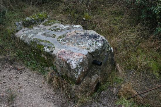 se veía una lancha muy grande de granito, por la que discurría un reguero de agua, llegando así al cruce que por la derecha lleva hasta