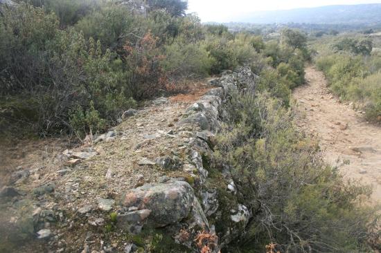 Siguiendo el muro sobre el que va la tubería, que en algunos puntos no se ve dicha conducción de hierro por haber desaparecido la tubería,