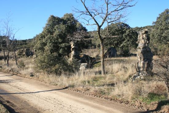 al llegar al camino forestal que va hacia la urbanización la Berzosa, solamente se sabe que iba por allí, al ver las toscas columnas de piedra