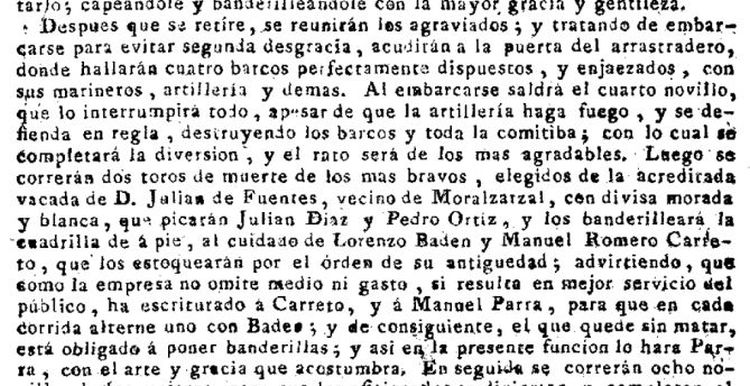 creó en 1830 la escuela de tauromaquia de Sevilla y describe las suertes de la corrida, empezando con el paseillo (desfile de matadores y demás