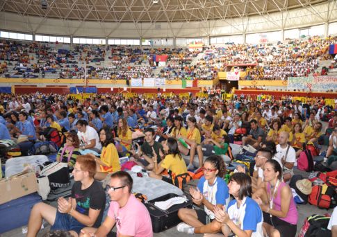 jóvenes de la zona italiana de Milán, Bérgamo, Turín y sus comarcas aledañas de la Lombardía, y la plaza estuvo ocupada con sus sacos de dormir tanto en el ruedo como en el tendido. En el ruedo se levantó una plataforma para el rezo y estuvo presidido por el cardenal