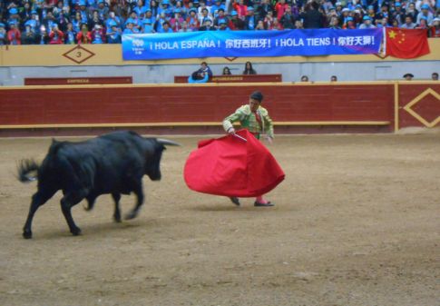 Ha habido otros acontecimientos que han resultado curiosos y atractivos, como cuando vinieron al pueblo en excursión un grupo de 2000 chinos que estuvieron en la plaza presenciando un espectáculo ecuestre taurino en el que disfrutaron mucho, pues se les notaba al verles la cara de alegría y admiración. Se trataba de empleados de la empresa Tiens perteneciente al emprendedor chino Li Jinyuan, que les premiaba con una visita turística a España donde estuvieron en varias poblaciones, y entre ellas en nuestro pueblo, al que vinieron en cuarenta autocares Se anunciaba que 2000 turistas chinos vendrán el viernes día 6 de mayo a Moralzarzal y asistirán en la plaza cubierta a ver y disfrutar un espectáculo taurino sin derramamiento de sangre, como así fue ya que vieron torear dos vaquillas. También presenciaron unos bonitos ejercicios de baile de caballos montados por alegres jinetes y bellas amazonas y una exibición de baile flamenco. Con ello se persiguieron dos fines, beneficiar a los comerciantes locales al acudir turistas y explotar comercialmente nuestra Plaza de Toros puesto que la falta de actividad es costosa para el erario municipal porque hay que mantenerla. Siguiendo estas líneas se muestran dos fotos en las que aparece a la izquierda el aspecto de la plaza cuando el 15 de mayo de 2011 jóvenes italianos del JMJ11 acamparon en ella y a la derecha cuando los chinos vieron el espectáculo taurino como parte del festival ofrecido. |