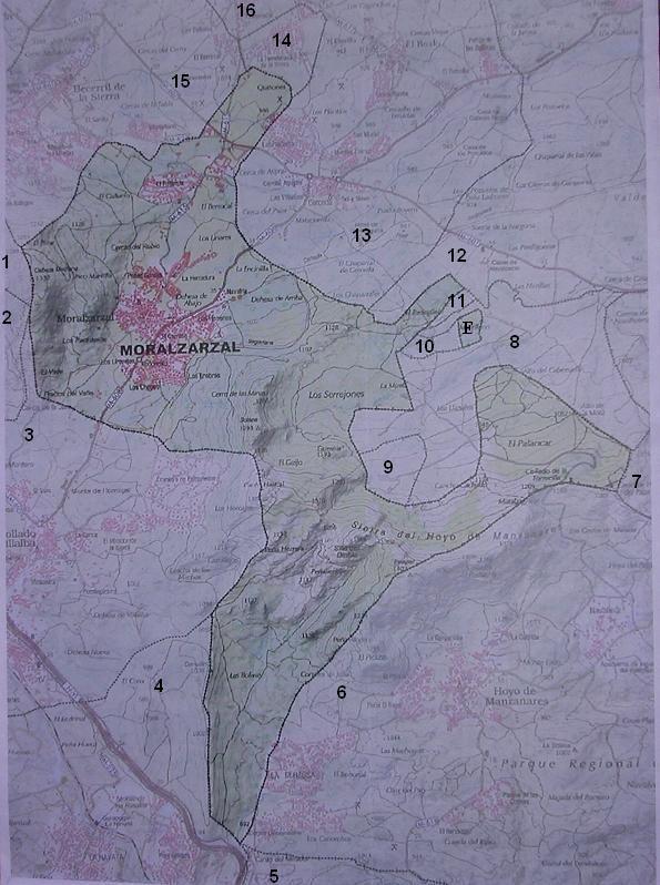 1 Collado Mediano 2 Alpedrete 3 Collado Villalba 4 Galapagar 5 Torrelodones 6 Hoyo de Manzanares 7 Becerril de la Sierra (Navahuerta) 8 Cerceda (Boalo) 9 Manzanares el Real 10 Becerril de la Sierra 11 Becerril de la Sierra 12 Manzanares El Real 13 Cerceda (Boalo) 14 Manzanares El Real 15 Becerril de la Sierra E Enclave de Moralzarzal Con Mataelpino (16) no tiene límite. |