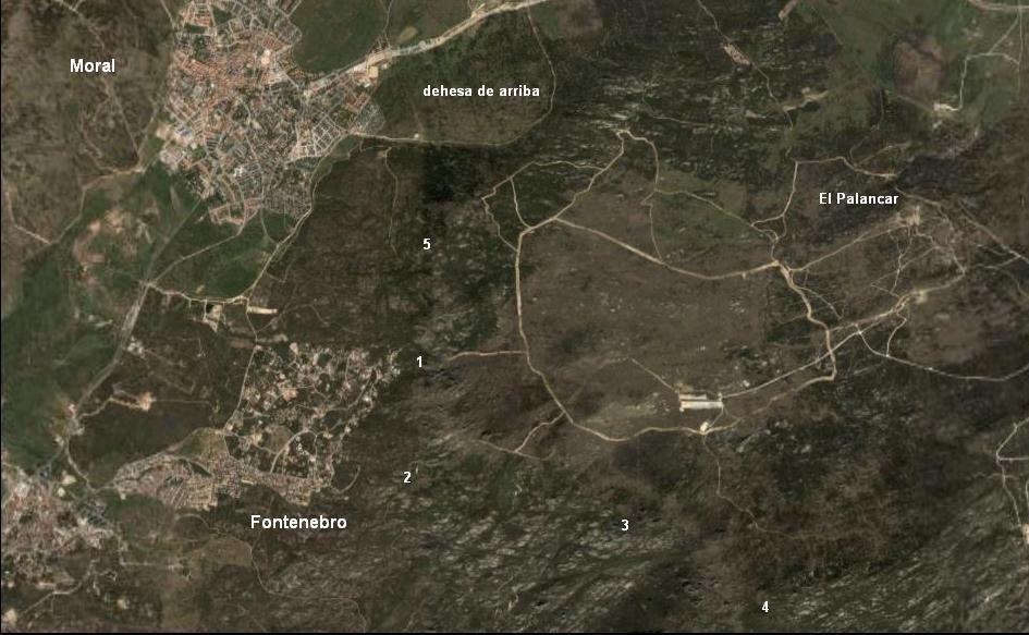 de uso militar. Entre otras cosas tenemos el portillo de la mina (1), canto Hastial (2), silla del diablo (3), Estepar (4) y Solana(5). |