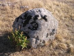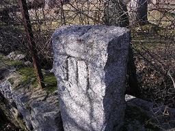 | a la derecha vemos un mojón en la zona del Gamonal cerca de la carretera de Becerril, en la separación de Becerril y Moralzarzal, con la M de Moral, arriba una cruz y detrás la B de Becerril. | ![]() |