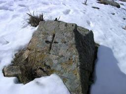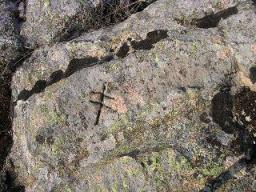 en esta foto vemos una cruz y una marca en una roca de la calle Capellanía. |