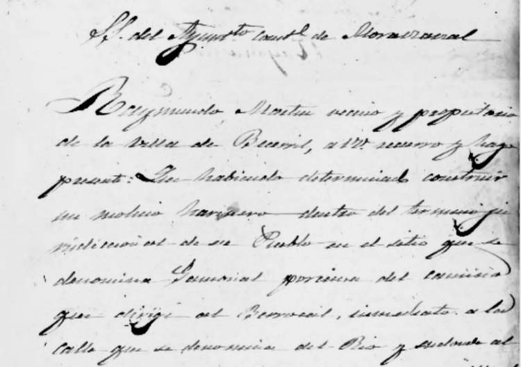 (como está escrito en el libro), en el cementerio que había en el patio Norte de la iglesia parroquial : En la Villa de Moralzarzal, a seis de marzo de 1867, yo el infrascrito cura propio de la parroquia, en virtud de un oficio del Sr. Juez de primera instancia del Partido de Colmenar Viejo, di sepultura Ecca. en el Campo Santo de la misma al cadáver de Raymundo Martín, soltero, como de sesenta años de edad, vecino que fue de Becerril, muerto violentamente hará como hace ocho días poco más o menos, según se espresa (sic) en dicho oficio cuyo cadáver fue hallado en el término de esta villa, y no ha recibido sacramento alguno. A continuación se ven los nombres de dos de los testigos, Sinforiano Morato y Juan Mazarías, y lo firma el párroco D. Leonardo Novel, el cuál estuvo hasta 1892 ejerciendo en la parroquia de nuestro pueblo. Y este Raimundo Martín Barrios era el que llevaba el molino del Berrocal hace ya mucho tiempo, y años antes y después de la guerra de 1936, el propietario fue Ángel Sanz, alias «Perejil», de Becerril de la Sierra, hermano de Popó el del estanco de Becerril, y una vez que ya se retiró de trabajar, se lo arrendó a Fidel Martín, que tenía a sus dos hijos, Pepe y Fidel Martín Colmenarejo, trabajando en la molienda, comprándolo Fidel. Al cabo de unos años, cuando el molino dejó de funcionar, lo compró un ciudadano francés, Pierre Louis Thevenet, persona dedicada al mundo del cine, trabajando en decorados de muchas de las películas de Samuel Bronston y este hombre se fue a trabajar fuera y no se supo más de él, permaneciendo el molino como propiedad de su anterior dueño, y al cabo de otro tiempo, el molino lo compró un hijo de Javier Velasco, conocido como el manco, dueño de la urbanización de Moralzarzal llamada El Retamar, y ese hijo era Juan Velasco, que lo estuvo arreglando, al parecer para hacer una casa rural, pero no lo terminó al fallecer muy joven de muerte repentina. Pero como ha habido muchas especulaciones sobre el origen del molino, que algunos dicen que era del siglo XVII, vamos a ver lo que nos dicen los documentos encontrados en el Archivo municipal de nuestro pueblo. Existe un documento en el dicho Archivo municipal, que trata del expediente sobre el molino harinero en la zona del Berrocal y va encabezado con Molino de Barrios Y continúa diciendo : Solicitud de Raimundo Martin, vecino de Becerril y concesion de un terreno para construir un molino harinero en el Rio de los Linares Y se dirige a las autoridades de Moralzarzal de la siguiente manera para presentar su solicitud : Raymundo Martin vecino y propietario de la villa de Becerril, a VV. recurro y hago presente : Que habiendo determinado construir un molino harinero dentro del termino jurisdiccional de su Pueblo en el sitio que se denomina Gamonal proximo del camino que dirige al Berrocal, inmediato a la Calle que se denomina del Rio y es donde al efecto se practique su demarcacion conciliando la mejor localidad para que con las aguas del rio que VV. llaman de los Linares pueda operar como quiera que para ello necesito su beneplacito al obtenerle. A VV. suplica se sirvan concederme el terreno que al intento sea menester previas las formalidades que tengan por conveniente determinar y condiciones que de acuerdo con VV. se pacten, puesto que en ello no se causen perjuicio alguno antes por el contrario les será ventajosa. - Es gracia que no dudo conseguir de VV. cuya vida guarde Dios ms as. Becerril junio 8 de 1858 = Y esta parte de su solicitud se muestra a continuación como documento que acredita lo dicho. ![]() Sigue el expediente con la parte que dice : Acuerdo En la villa de Moralzarzal á trece de junio de mil ochocientos cincuenta y ocho; previa la oportuna convocatoria se reunió el vecindario en la Sala Consistorial ante el Municipio de ella y yo su Srio. de orden del Sor. Presidente hice notoria la pretensión que tiene hecha Raimundo Martin vecino de Becerril leyendo literalmente el memorial que precede con objeto de que se le conceda un pequeño pedazo de terreno en campo abierto del comun de vecinos y sitio que en el Gamonal y rio de los Linares se le señale y que sea capaz pa construir un molino harinero; ... Sigue la reunión en la Casa Consistorial y enterados de la obra que pretende hacer Raimundo Martín, y viendo que es de utilidad para el pueblo y que no habrá gasto para el vecindario, los reunidos acuerdan autorizar al municipio para que se haga la concesión del terreno que solicita, dándole gratuitamente el suelo necesario para instalar los artefactos necesarios y señalar sus límites donde mejor concuerde la necesidad y capacidad del terreno, y que en recompensa de la gracia que se le hace solo se le ha de maquilar durante el tiempo que esté en pie el molino sea cual fuere su proveedor, dos cuartillos por fanega cualquiera que sea la especie de granos que concurren a moler como maximum de maquila, entendiendose solo esto con referencia a los moradores de este pueblo, quedando en plena libertad de fijar la que estime por conveniente con respecto a los demas que acudan; ... Como se ve, para los vecinos del pueblo le imponen una maquila de dos cuartillos de grano o harina que le corresponde al molinero por la molienda, siendo el cuartillo la cuarta parte del celemín o poco más de un litro. Y también le ponen la condición de que será de su cuenta hacer que las aguas que vierta el molino se vayan por la cacera que se dirige a los Linares, y si no fuese posible que vuelvan a la presa que hoy existe como punto de partida de dicha cacera, deberá construir otra para recoger esas aguas de salida del molino y conservar la presa en buen estado. Además no ha de poner obstáculo alguno en las regalías o privilegios que tienen del agua para que por las caceras hechas de antemano se dirijan a las fincas que tienen este derecho aun cuando tengan la separación antes del principio del caz y para que no se dude de qué heredades tienen este d