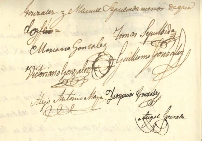 Y se ven las firmas de Mariano González, Tomás Sepúlveda, Guillermo González, Victoriano González, Alejo Antonio Maya,