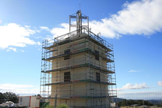 Las obras siguen a buen ritmo y ya se puede ver la torre despejada sin andamios, con las fachadas enfoscadas y a falta de colocar la escalera interior