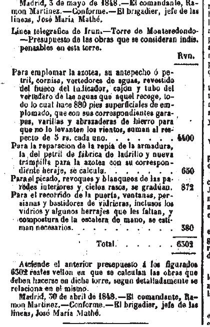 En El Heraldo del día 7 de enero de 1846 aparece una noticia fechada en Vitoria diciendo que continúan los trabajos de los telégrafos,