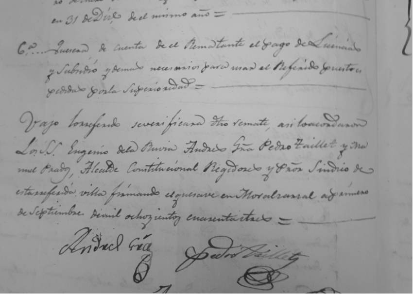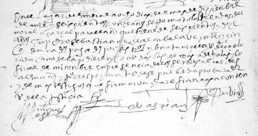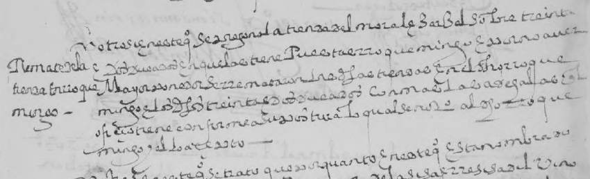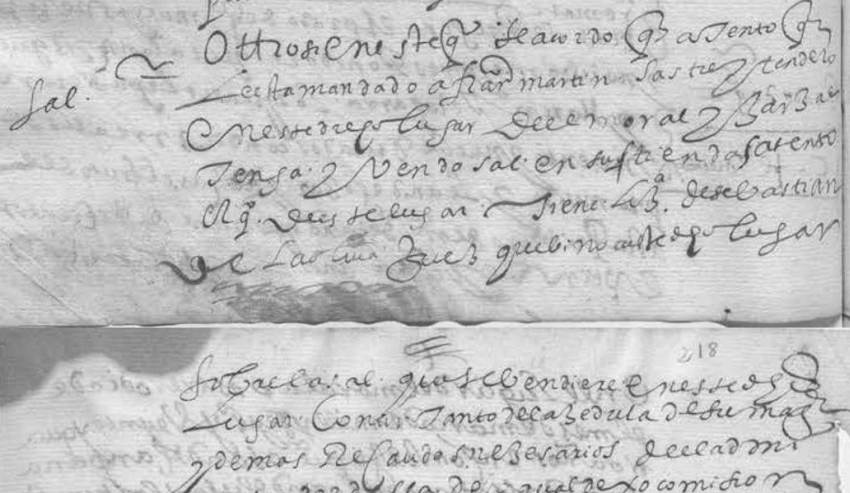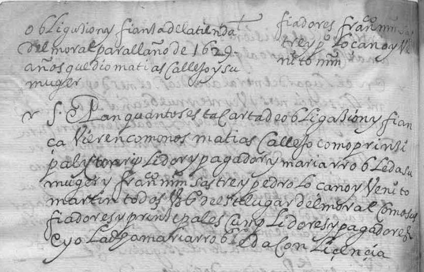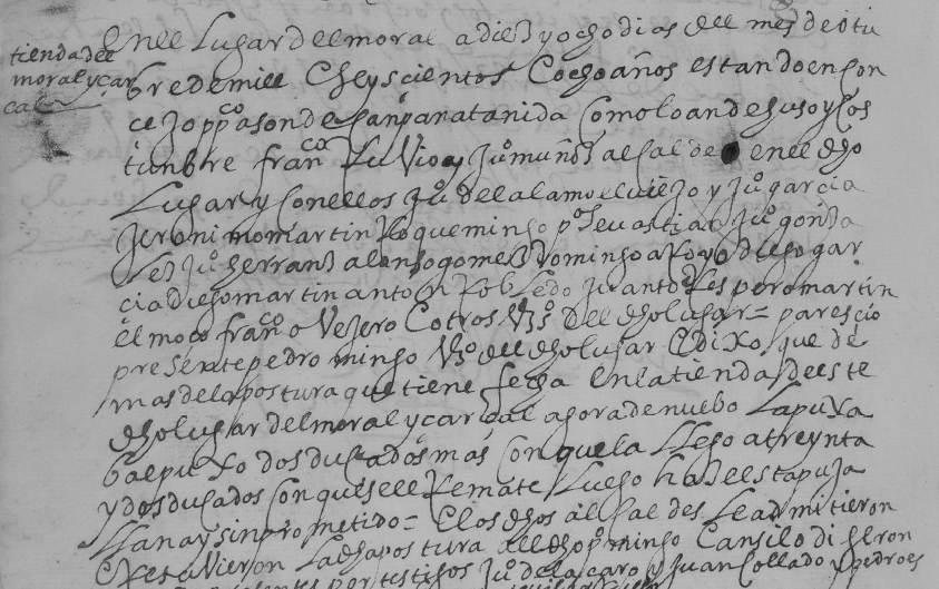 Como en todas las subastas, se procedía a pregonar el objeto de la misma, en nuestro caso la tienda, luego se reunían en el edificio del Consistorio los alcaldes, el procurador y vecinos para proceder al remate o logro de la adjudicación de la subasta mediante la postura o proposición hecha por el licitador o licitadores del precio o dinero para conseguir lo que se subastaba, y una vez conseguido el remate, se escribía la escritura de obligación y se daban las fianzas pertinentes, firmándolo para acreditar el haber conseguido el objeto de la subasta. Y en las líneas que siguen de esta página web, vamos a hacer una recopilación de los diversos documentos del archivo municipal en los que se tratan las reuniones de la Corporación municipal o Concejo, y nos dicen cosas de las subastas de la tienda del pueblo, quienes de sus vecinos se quedaban como tenderos, cuánto pagaban y condiciones con las que desempeñaban el servicio. En el archivo municipal hay documentos agrupados en "libros", como el de 1606, en el cual se ve una dedicatoria que dice "A Francisco Rozalen, guarde Dios muchos años que deseo: Escribano de su Majestad y del Número de la villa de Moral", y en la cabecera tiene puesto, imitando el lenguaje tal como está escrito, lo que sigue : Este libro es del conçexo del moral para escribir las cosas tocantes al dicho qo y se començo a escribir en el oy diez y ocho Dias del mes de dizienbre de mill y seyszios y seys años como se ve en la parte del documento que se muestra seguidamente, y es curioso ver como se encabeza el documento con ese "Jesucristo", el Jsus y la letra griega X (xi) de Cristo, arriba. ![]() Entre los documentos que se conservan en ese archivo municipal del Ayuntamiento, hay bastantes que nos dicen las subastas que se hacían de la tienda, y de ese año 1606 hay uno que nos dice que en el lugar del Moral, el día 18 del mes de diciembre de 1606, estando en Concejo público presentes los alcaldes Antón Muñoz y Alonso Barroso, y el procurador Francisco Rubio y otros vecinos, se presentó Alonso Robledo, vecino de este lugar y dijo que por la tienda de Moral y Zarzal, para el año que viene de seiscientos y siete, la pone todo lo que se vendiere en la dicha tienda a postura de los alcaldes y da de alcabala diez mil maravedís y todas las demás adehalas que tiene la tienda este año, y dará fianzas a contento. Pone que estaban presentes los alcaldes, que eran dos, y se elegían uno por el Moral y otro por el Zarzal, aunque solamenta había un único procurador para las dos poblaciones. Sigue otro documento diciendo que hubo sesión del Concejo en presencia del escribano del Rey y público, Sebastián Martínez, con los alcaldes Antón Muñoz y Alonso Barroso, el procurador Francisco Rubio y muchos vecinos, y en el Concejo se hizo lo siguiente : "En el lugar del Moral Postrero dia de Pasqua del Santisimo nasçimiento de nro Señor Jesucristo que se quentan beinte ε cinco Dias De Diziembre de mill seiscientos ε seis años en presençia de mi Sebastian Martinez Scribano del Rey nro Señor y publico de este dho lugar estando en qo publico a boz de canpana tañida segun lo tienen de uso ε costunbre de se Juntar Anton Muñoz ε alonso barroso allds En el dho lugar ..." y después de hacerse el remate de la taberna del Moral, la del Zarzal y el acuerdo sobre los 4000 reales para la construcción del puente de Odón que su Majestad ordenó pagara este lugar de sus propios y no se repartiera entre los vecinos, y se pregonara la taberna del Zarzal, se hizo el remate de la tienda según se ve en un acta que dice : Otro si en este qo se Pregono la tienda deste dho lugar con la del çarzal sobre los Diez mil mrs εn que la tiene puesta alonso De rrobledo a postura de la Justa para el dho año venidero de mill ε seisçientos ε siete con mas sus adehalas ε por no auer mas ponedor Se rremato la dha tienda εn el dho alo Derrobledo εn los dhos diez mill mrs de alcauala ε mas quatro fanegas de trigo Para la Caridad de San Sebastian y tres arrobas de higos para cada ε quando que se las pidan ε las demas adehalas de perdizes ε gallinas que el dho ofiçio tiene conforme εste presente año de seisçientos ε seis ε quedo rrematado εl Dho ofiçio εn el dho alonso Derrobledo εl qual açepto el rremate ε se obligo de hazer obligaçion ε dar fianças A contento de la Justa Y todo esto se hizo y otorgó en el Concejo celebrado el día, mes y año arriba dicho, siendo testigos Pedro Pascual, Bartolomé Sebastián y Miguel Esteban, vecinos del lugar, firmando los que supieron, y por los que no sabían, a su ruego lo firmó un testigo. Se ven las firmas y se saca en conclusión de esta primera subasta de la que tenemos constancia, que la tienda se la quedó Alonso de Robledo por 10.000 maravedís de alcabala o impuesto, más cuatro fanegas de trigo para la "caridad" de San Sebastián y tres arrobas de higos que las entregará cuando se las pidan, que son las adehalas que tiene el oficio y además gallinas y perdices, y se ve bien claro que la tienda era para abastecer al Moral y al Zarzal. Y como broche de la subasta y remate anterior, en el mes de abril de 1607 tuvo lugar la firma de la escritura de obligación y fianza de la tienda del Moral y Zarzal para el año de 1607, a postura de la Justicia de este lugar, y dice que por cuantos esta carta de obligación y fianza vieren como Alonso de Robledo, como principal tendero y obligado, y Juan de Robledo y Pedro Rubio el mozo, como sus fiadores y principales cumplidores y pagadores ... , y se corta la carta no diciendo nada más hasta el final en que pone que fue hecha y otorgada en el lugar del Moral a dieciséis días del mes de abril de mil seiscientos siete, estando presentes como testigos Domingo Gómez, Alonso Millán y Alonso Izquierdo, y se ven las firmas de Domingo Gómez y la del escribano Sebastián Martínez. De cualquier manera, ya tenemos otro tendero en el año 1607 para llevar la tienda de Moral Z