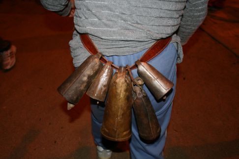 haciendo sonar los cencerros que llevaban atados alrededor de la cintura.