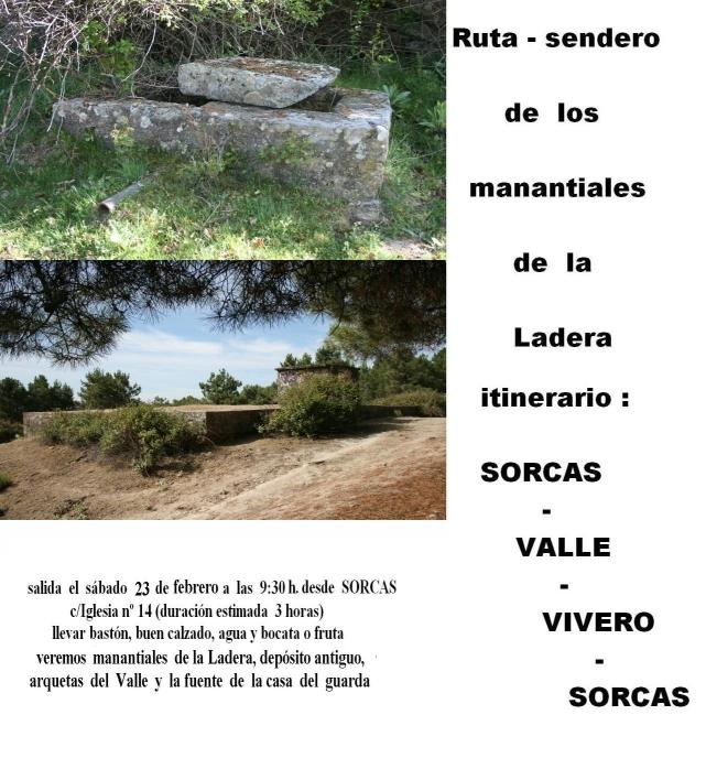 - Ruta sendero de los manantiales de la Ladera y el Valle - La marcha se hizo el día 23 de febrero de 2013, y la salida se hizo como siempre desde la calle de la Iglesia nº 12, donde está SORCAS, a las 9:30 horas. Tuvimos una jornada con bastante viento, muy desagradable y frío, pero el almuerzo realizado al cobijo de unas rocas y zarzas en uno de los corrales que se encuentran en el Valle, cercano a las arquetas de recogida de aguas para canalizarla al depósito de la Ladera de Matarrubia, nos hizo olvidarlo. El cartel que anunciaba esa marcha es el que se muestra a continuación : ![]() El recorrido fue de unos 8 km. aproximadamente y la cuarta parte se realizó campo a través, fuera de cualquier sendero. Salimos seis "valientes" a las 9:30 de la mañana desde el lugar de la cita, y digo valientes porque después del tiempo tan horrible que hizo la noche del viernes a sábado, era de esperar que acudieran pocos a la convocatoria. Nos dirigimos hacia la fuente de los cuatro caños, donde contemplamos la placa de mármol que hay en el frontis que hay arriba de donde salen los caños grandes y vimos la inscripción que dice : A ESPENSAS DE LOS FONDOS MUNICIPALES CON LA CELOSA COOPERACION DEL AYUNTAMIENTO Y PRESTACION DEL VECINDARIO DEBIDO A LA CONSTANTE PERSEVERANCIA DE D. ANGEL GONZALEZ SOLIS SE TRAGERON ESTAS AGUAS DE LOS MANANTIALES DE ROBLEDO Año de 1885 Angel González Solís fue regidor de Moralzarzal, notario del pueblo, y habitó en una casa muy bonita que aún se conserva, viéndose en el dintel de la puerta de entrada la fecha, 19 de noviembre de 1869. También leímos la inscripción que hay grabada en la piedra de la que salen los caños pequeños, que dice : ESTA OBRA Y CON DUCCION DE SUS AGUAS SE HIZO CON ACUERDO DEL AYUN TAMIENTO DE ESTA VILLA A ESPENSAS DE SU PROCURADOR EL S.D. JULIAN DE FUENTES REGIDOR PERPE TUO DE MADRID AÑO DE 1817 Luego seguimos subiendo por la calle Juncarejo y a mitad de la calle recordamos la arqueta que hubo en ese punto en tiempos de cuando D. Julián de Fuentes era propietario del prado Mesón y de la huerta, donde está la calle de ese mismo nombre y la hermosa casa que allí tenía, arqueta que recogía el agua que venía desde el manantial cercano al Peñote (o Peñota) y que repartía dor terceras partes del agua para el pueblo, yendo a parar al lavadero, y una tercera parte para él, pasando por el prado Mesón y llegando a la huerta y su casa. Tomamos un sendero de la Ladera y vimos las arquetas de la conducción que llevaba el agua del manantial antedicho hasta los caños pequeños, y continuamos por ese sendero, desviándonos un poco y subiendo para ver el manantial de Matarrubia. Retomamos el sendero y llegamos hasta el antiguo depósito de Matarrubia, y viendo arquetas de entrada del agua a ese depósito, fuimos subiendo en diagonal respecto al camino que llevábamos, cruzamos la conducción del Canal de Isabel II justo por donde venía la tubería que traía el agua desde el Valle al depósito mencionado, y vimos un tubo de hierro de esa traida de aguas donde se ve estampado "AURRERA BILBAO". Seguimos subiendo y cruzamos el camino forestal que por la parte este del Valle llega por de trás de Pico Martillo hasta la casa del guarda. Pasamos cerca de antiguas canteras de piedra rubia y llegamos hasta divisar un chopo cercano al arroyo del Valle y junto a él una arqueta, la principal, que recogía el agua que la mandaban otras de la zona. Cruzamos el arroyo del Valle por donde la arqueta principal y vimos los restos de un gran corral, y por esa zona comprobamos la presencia de otras arquetas, y luego nos pusimos al cobijo de unas rocas siguiendo el "ritual" del almuerzo, que cuando viene "el pincha", es de órdago lo que se almuerza, probando además los chorizos hechos por María y su hermano Miguel. Luego subimos hasta la parte alta del Valle, donde están los restos de la casa del guarda que hubo, Juan Martín Lázaro, y la fuente, y tomamos un camino en dirección norte para enseguida encontramos un cortafuegos por el que bajamos hacia el pueblo, siguiendo, al acabar ese cortafuegos, por la pista forestal en dirección al pueblo, entrando por la calle Juncarejo. A continuación se muestran unas fotos de la marcha, en las que se ven distintas cosas que contemplamos y fotos para el recuerdo de los que participamos en ella, apareciendo en la primera de la izquierda el manantial de Matarrubia, del que se recogía el agua que se llevaba a la fuente de Matarrubia del barrio de Arriba, trabajo realizado por los vecinos de ese barrio en el año de 1925. En la foto de la derecha se ven cuatro de los senderistas de este día posando junto al depósito de Matarrubia, ya fuera de servicio, que se inauguró en el año 1928, con asistencia de todo el pueblo, con escolares acompañados por sus maestros, D. Carlos Ovejero y Dª. Ricarda (ver en la web dedicada a agua lo correspondiente a este depósito, "depósito de la Ladera"). |