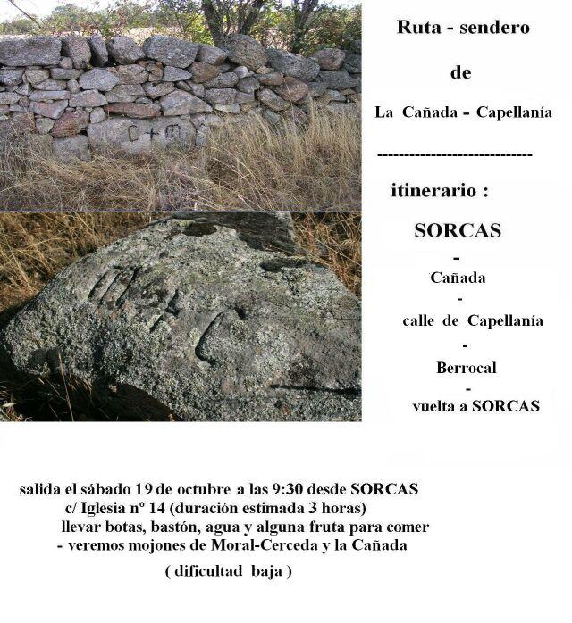 - Ruta sendero de la Cañada y Capellanía - La marcha se hizo el día 19 de octubre de 2013, y la salida tuvo lugar a las 9:30 horas pasadas (pues siempre hay alguno que no lleva el reloj en hora), desde la calle de la Iglesia nº 12, donde quedamos como de costumbre, a la puerta de SORCAS. El cartel que anunciaba esa marcha y que se expone en diversos locales es el que se muestra a continuación : ![]() Tuvimos una jornada nubosa pero con la suerte de que no llovió, a pesar de que las predicciones decían lo contrario, y el tiempo era muy bueno para caminar frescos. Salimos por la calle de la Huerta y luego por la Avenida de Salvador Sánchez Frascuelo, pasando por delante de la plaza de toros y seguimos por la Vía del Berrocal hasta legar a la Dehesa Vieja, entrando en ella y salimos por la puerta que hay cercana al paso subterráneo que permite pasar por debajo de la carretera M-608 y situarnos en la calle España y tomar seguidamente la calle Guadarrama. A nuestra derecha dejamos el polideportivo municipal y pasamos luego por el polígono de la Encinilla, tomando la Cañada y fuimos hasta la confluencia de esta con el Cordel de la Cerca de Arriba (Dehesa Nueva), pasando entre el campo de tiro y la estación de bombeo del Canal de Isabel II que hay junto a la tapia de la Dehesa de Arriba en plena Cañada. Subimos un poco por dicho Cordel y fuimos hacia la izquierda hasta la tapia del monte del Marqués, donde pudimos ver uno de los mojones de la linde de Cerceda y Moralzarzal, con una cruz separando las iniciales de los dos pueblo, la C y la M. Cordel es la vía pastoril para los ganados trashumantes, que, según la legislación de la Mesta, es de 45 varas de ancho, según el DRAE, siendo la vara una medida de longitud que se usaba en España con valores diferentes según las regiones y que variaban entre 768 y 912 mm, aunque aquí por esta zona se empleaba la vara castellana, también denominada vara de Burgos, con un valor de 836 milímetros. Tomamos luego el camino que desde la carretera M-608 lleva hasta la finca de Torrego llamada el Chaparral de Cerceda (antiguamente finca del marqués de Torrelaguna), y fuimos en dirección a dicha carretera. Antes vimos una piedra clavada en el suelo con una cruz grabada en la parte superior, una M en un costado y una C en el lado opuesto, otro mojón de separación de Cerceda y Moralzarzal. En el camino dicho antes, pudimos ver otro mojón junto a un enebro con esas mismas grabaciones, cruz, una C y la M, pero la piedra era bastante más grande, cercana a un metro de altura. Pasamos por el descansadero de Fuentidueña y pudimos contemplar otro mojón con los mismos signos grabados en una piedra nativa y vimos también enebros con la plantas parásitas llamadas arceutobio o muérdago de oxicedro. Cruzamos la carretera M-608 por el lugar conocido como Las Columnas, lugar por donde entra desde esa carretera el camino que lleva a la finca dicha anteriormente, y continuamos por un sendero pegado a la tapia de otra finca para cruzar el cauce seco del arroyo del Piojo, llamado también Regajo de los Mares y más conocido en el pueblo como "reajo del caño", por donde vimos plantas de retama loca y agallas en robles, las llamadas también "manzanas de roble". Ya estábamos en la calle Capellanía y vimos otro de los mojones de la línea divisoria de Moralzarzal y Cerceda, muy cerca de la finca llamada "La Lozana" perteneciente al vecino pueblo de Cerceda. Desde la calle Capellanía, por donde íbamos, contemplamos a la derecha, en una de las dehesas de Cerceda, una zona donde se ve una cruz y mesas de piedra y bancos también de granito, lugar donde se reunen gentes de ese pueblo para celebrar meriendas camperas por la fiesta de la Cruz de Mayo. Continuando por la calle Capellanía, llegamos prácticamente al río Navacerrada o Samburiel, y llamado por muchos habitantes de Moral como río Berrocal, sentándonos en unas piedras donde se hizo un alto para tomar el bocadillo. Por la carretera fuimos hasta el colegio Leonardo da Vinci y tomando un camino que hay entre el colegio y unos prados a su izquierda, llegamos hasta las Hachazuelas, pudiendo ver lo que allí se está haciendo, y enfilando la calle de las Erillas llegamos al pueblo y en la plaza del Caño se disolvió el grupo que habíamos hecho esa marcha, despidiéndonos hasta la próxima. Seguidamente se muestran unas fotos de la marcha, en las que se ve al grupo a la puerta de SORCAS, antes de comenzar, y en la siguiente foto se ve a parte del grupo junto a una roca ya en la calle Capellanía donde se encuentra un mojón. ![]() ![]() En las siguientes fotos de la marcha, se ve a parte del grupo alrededor de otro de los mojones de la calle Capellanía, y se puede apreciar que hay mayoría femenina y en la siguiente se ve comiendo el bocata a los que lo llevaron y al resto contemplando como se lo comían, junto a la tapia de la Cerca de la Mata, próximo al río Navacerrada. ![]() ![]() En estas fotos que siguen, se ve cuando el grupo va a cruzar el río Navacerrada frente a la urbanización El Linar de la Maliciosa y en la otra se muestra uno de los bonitos rincones que se pueden contemplar en el río. ![]() ![]() |
